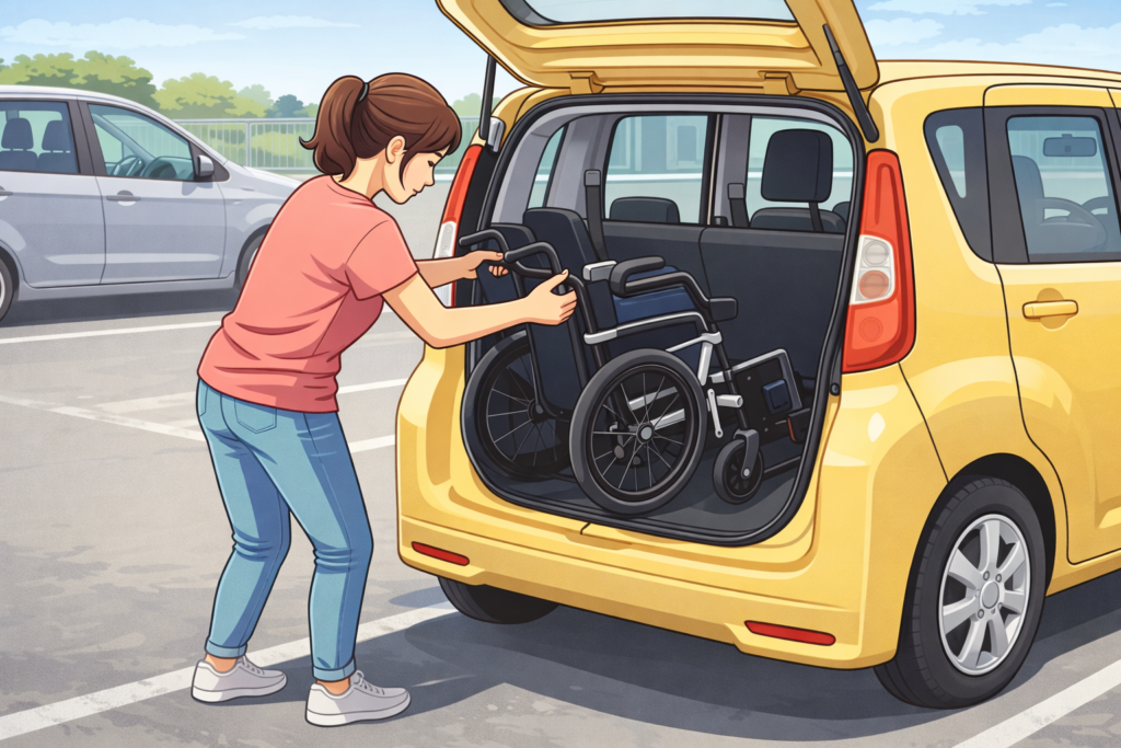 車移動が多い方は、積み下ろしの頻度・介助者の体力・収納方法(持つ位置や折りたたみやすさ)まで含めて、「無理なく扱える範囲か」を基準に選ぶと後悔しにくくなります。