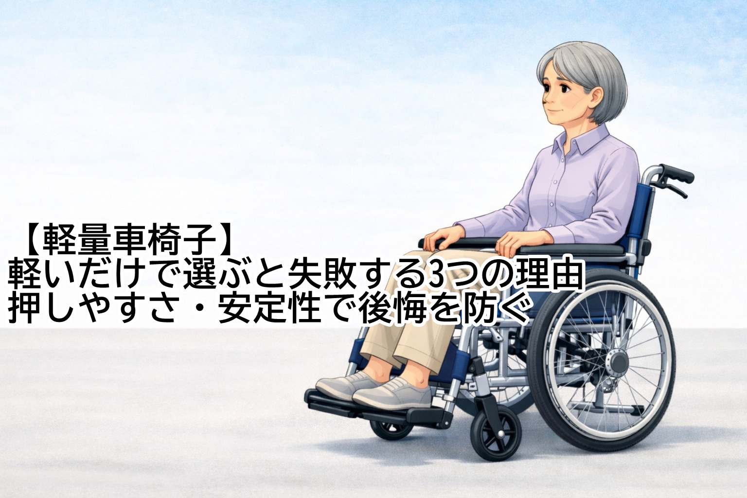 軽量車椅子は「軽さ」だけで選ぶと、押しにくさや不安定さで後悔しやすい製品です。