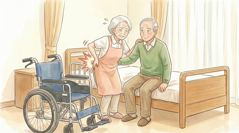 重力に逆らって人を持ち上げる動作は、腰への負担が非常に大きく、多くの介助者が腰痛に悩まされる原因となっています。