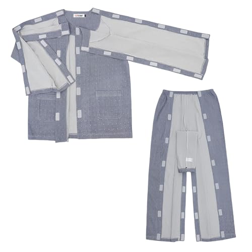 ・上着・ズボンともにマジックテープ仕様で、ウエストから裾まで全開可能。寝たままでも着脱が簡単