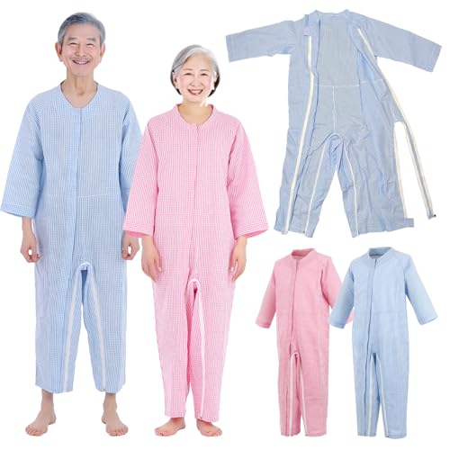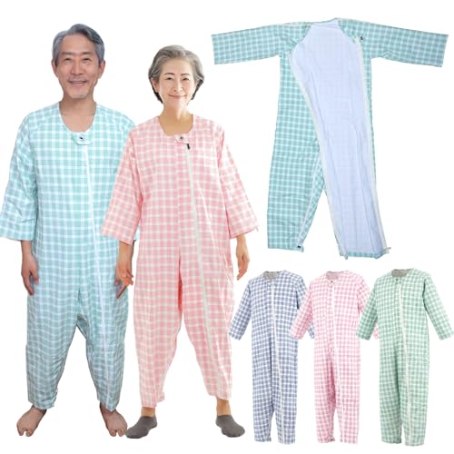 介護パジャマ 理学療法士監修 介護つなぎ 柔らかい生地 スライダー取り外し式 おむついじり防止 ファスナー前面オープン/Carecoa