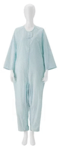 ・前面フルオープン仕様で、おむつ交換や更衣介助がスムーズに行える介護用つなぎパジャマ。