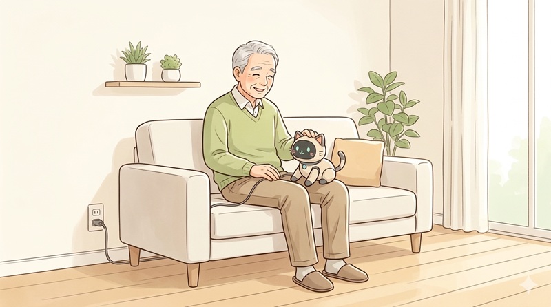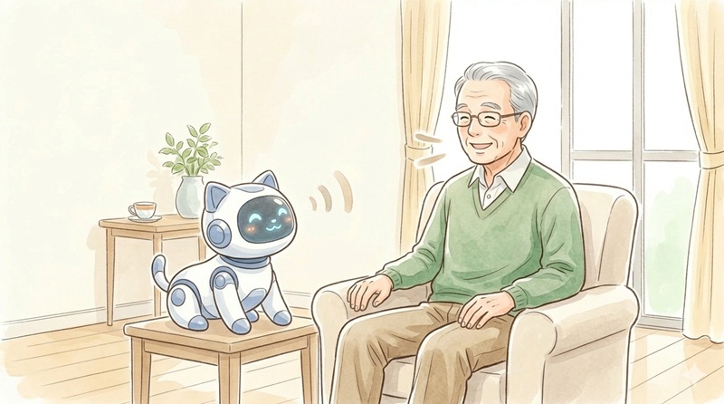 機械に向かって話しかけることに抵抗がある親御さんや、とにかく「寂しさを紛らわせる存在」が欲しい場合には、スキンシップで心を和ませるペット型ロボットが最適です。